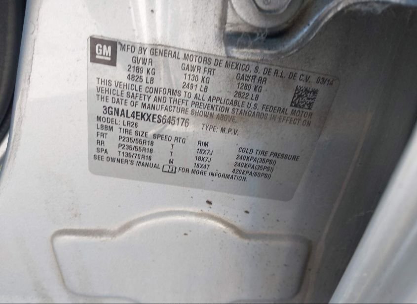 - VIN: 3GNAL4EKXES645176