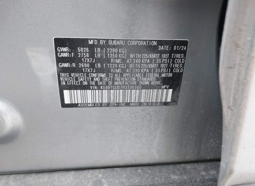 - VIN: 4S4BTGUD7R3236500
