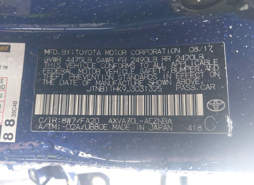 - VIN: JTNB11HK9J3031325