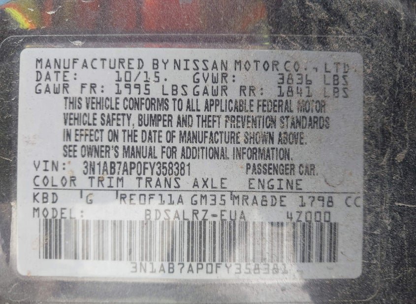 - VIN: 3N1AB7AP0FY358381