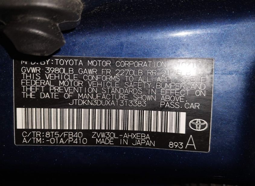 - VIN: JTDKN3DUXA1313383