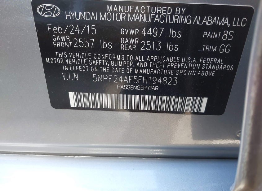 - VIN: 5NPE24AF5FH194823
