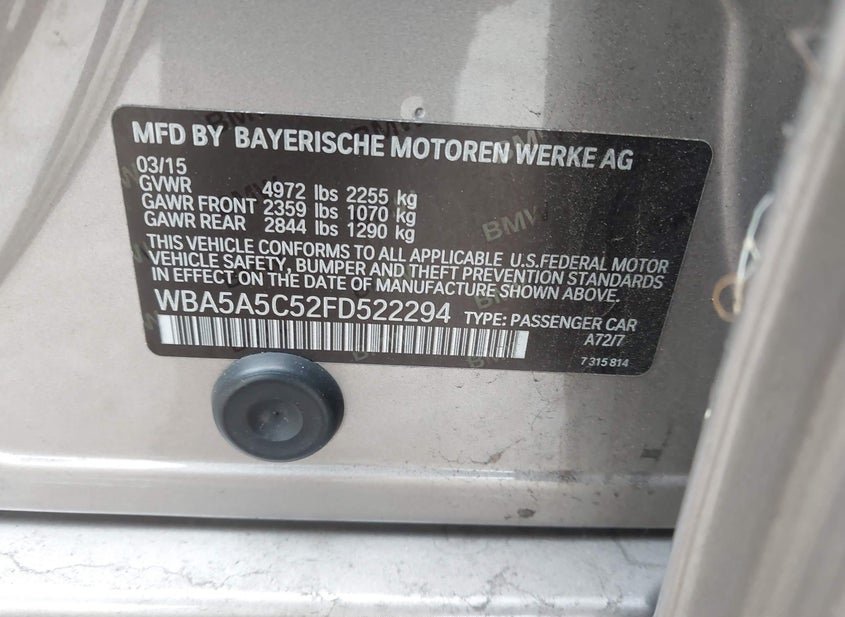 - VIN: WBA5A5C52FD522294
