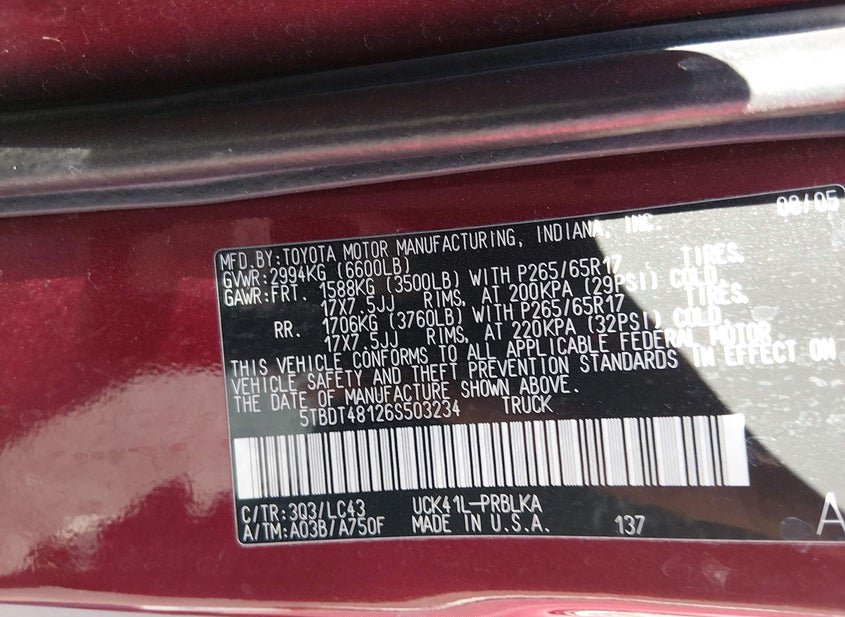 - VIN: 5TBDT48126S503234