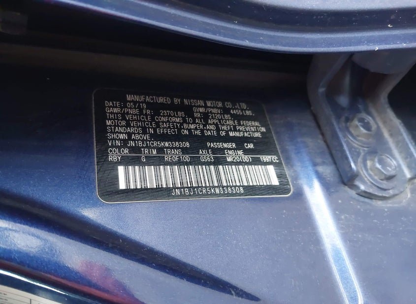 - VIN: JN1BJ1CR5KW338308