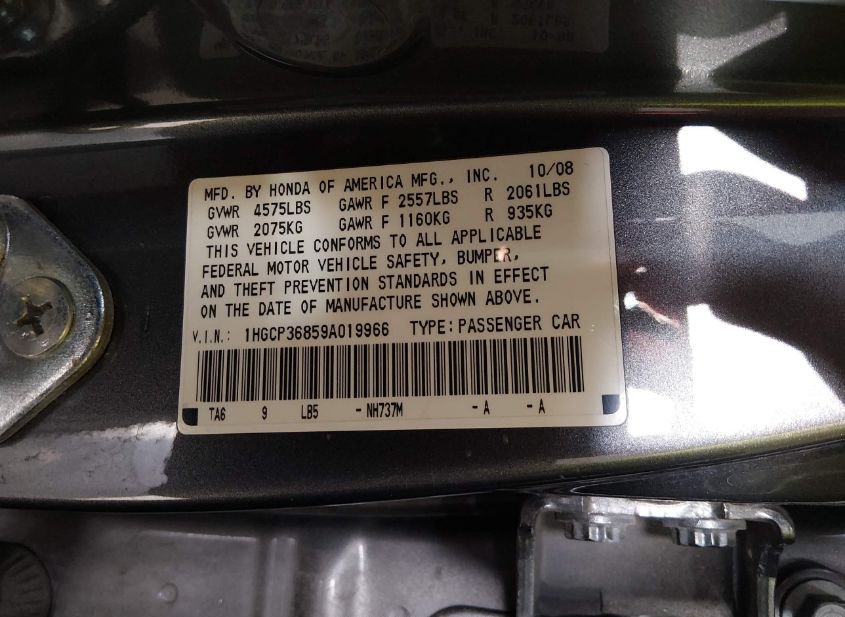 - VIN: 1HGCP36859A019966