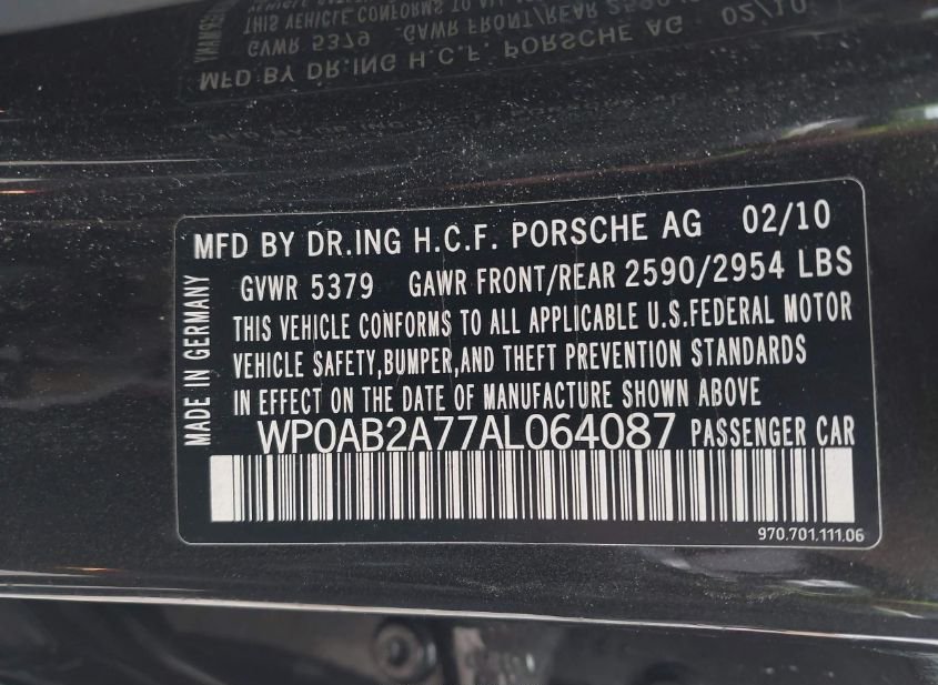 - VIN: WP0AB2A77AL064087
