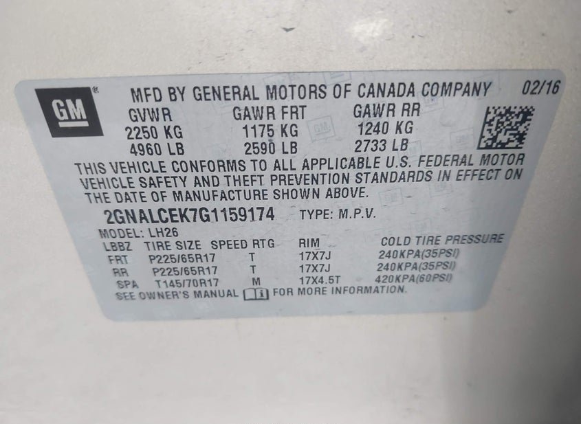 - VIN: 2GNALCEK7G1159174