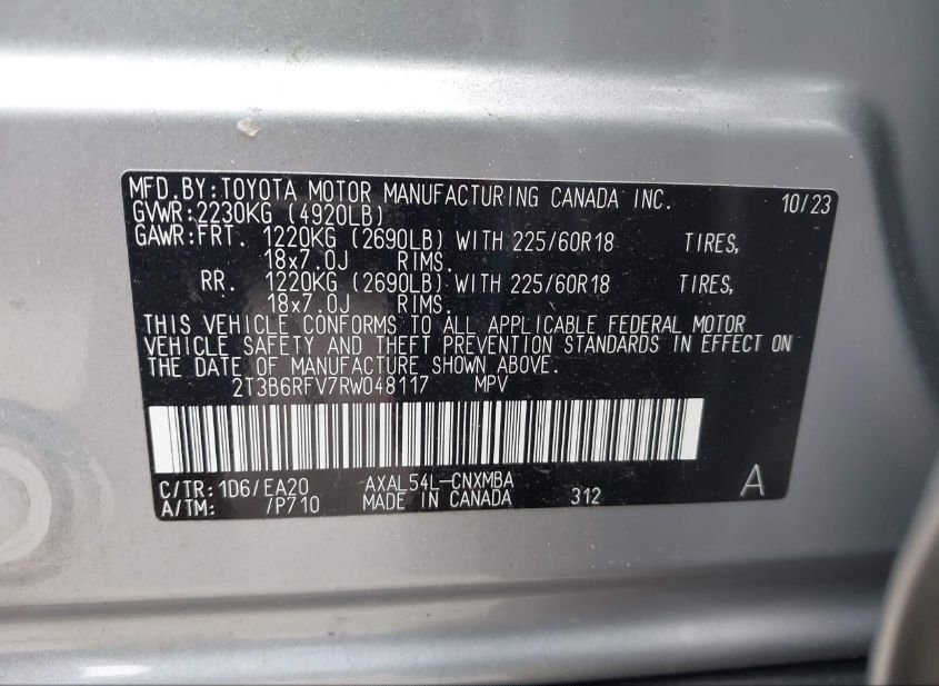 - VIN: 2T3B6RFV7RW048117