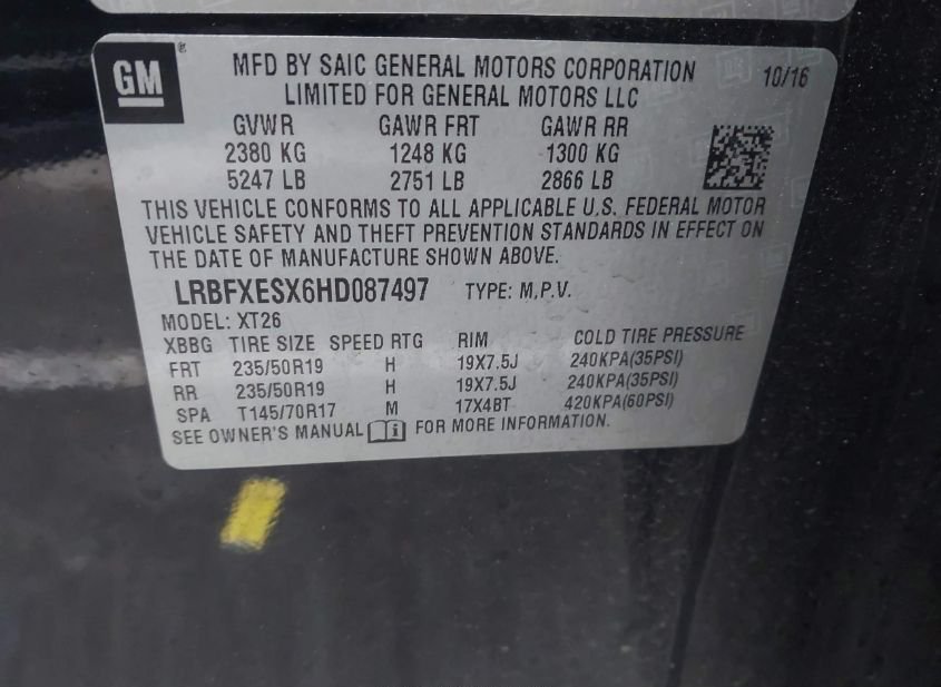 - VIN: LRBFXESX6HD087497
