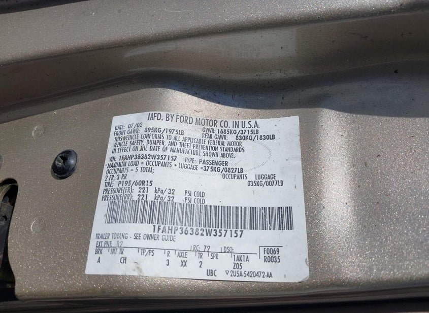 - VIN: 1FAHP36382W357157
