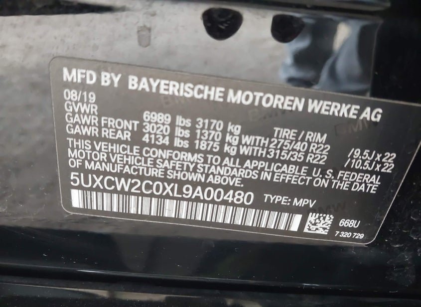 - VIN: 5UXCW2C0XL9A00480