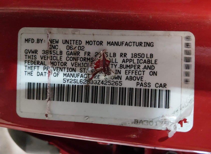- VIN: 5Y2SL62833Z425265
