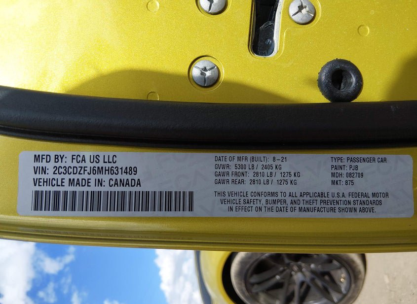 - VIN: 2C3CDZFJ6MH631489