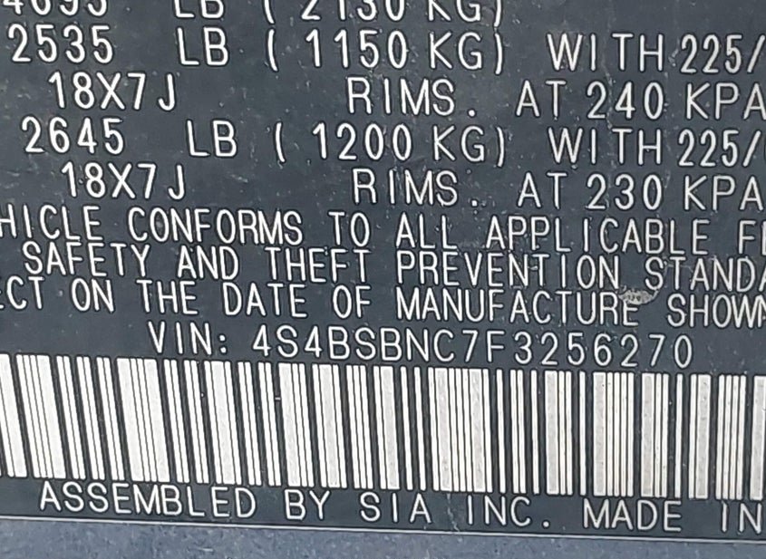 - VIN: 4S4BSBNC7F3256270