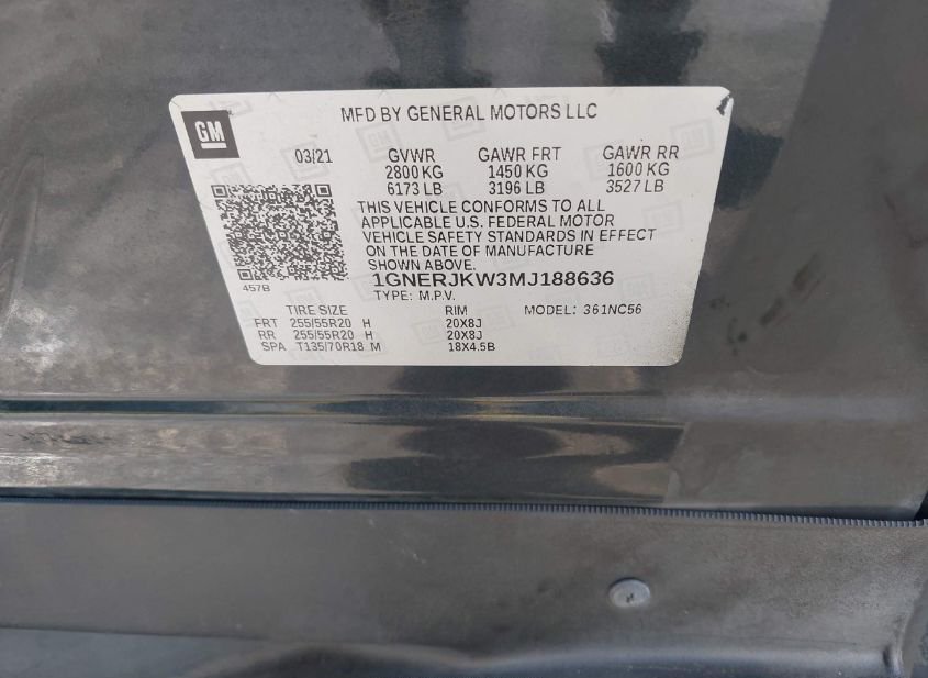 - VIN: 1GNERJKW3MJ188636