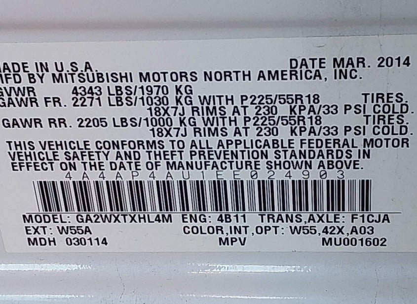 - VIN: 4A4AP4AU1EE024903