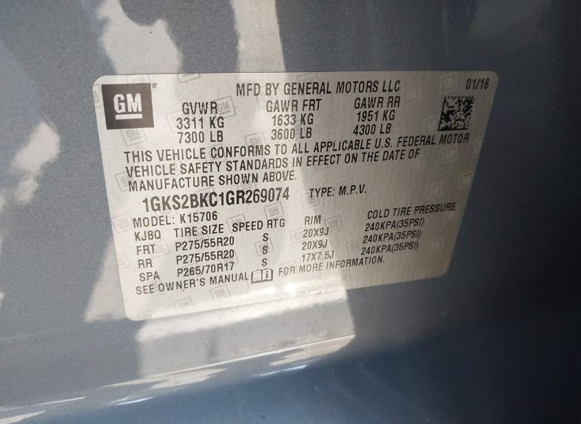 - VIN: 1GKS2BKC1GR269074