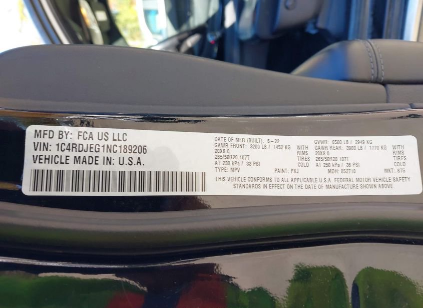 - VIN: 1C4RDJEG1NC189206
