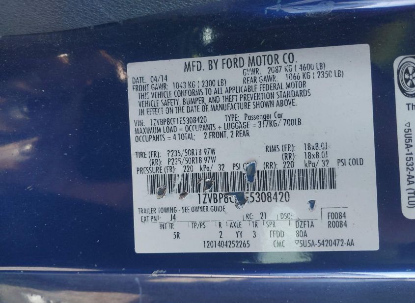 - VIN: 1ZVBP8CF1E5308420