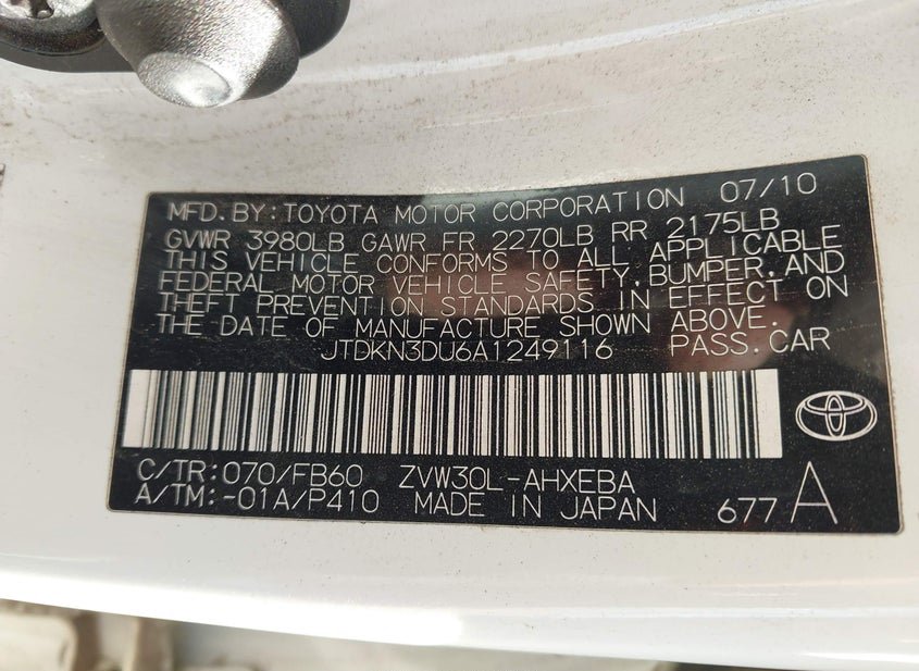 - VIN: JTDKN3DU6A1249116