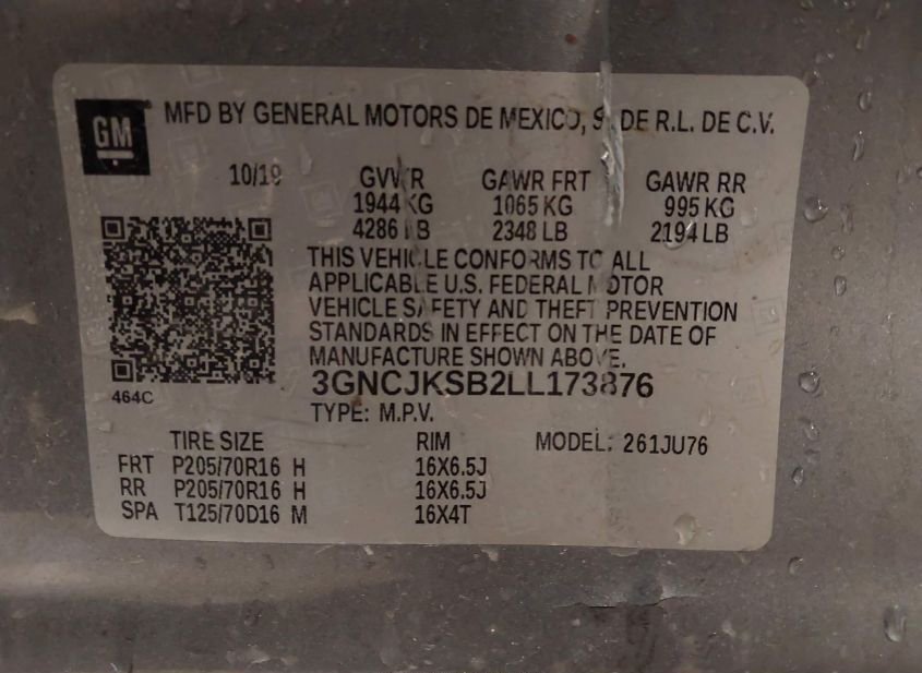 - VIN: 3GNCJKSB2LL173876