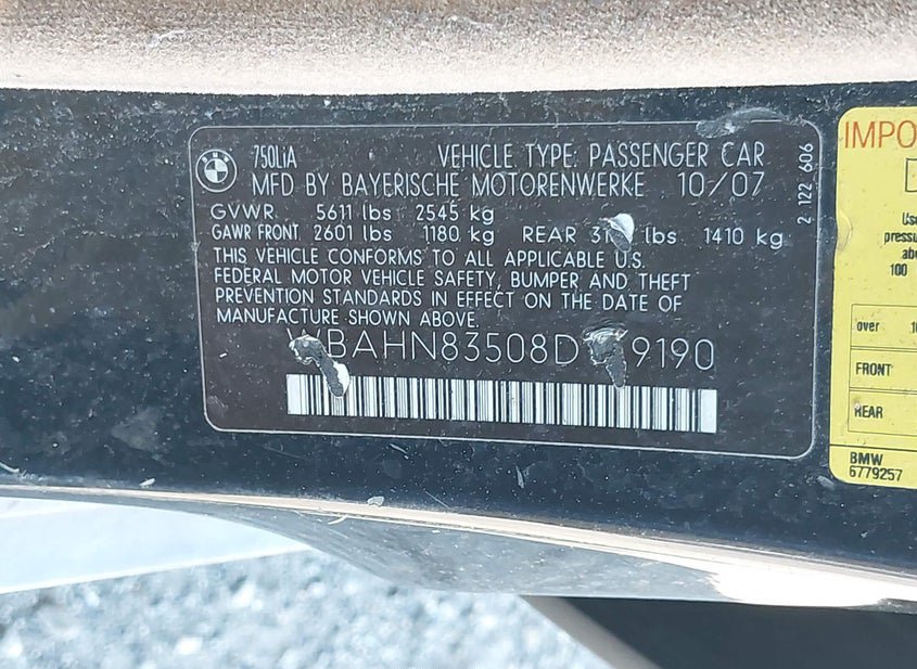 - Название лота: 2008 BMW 750LI