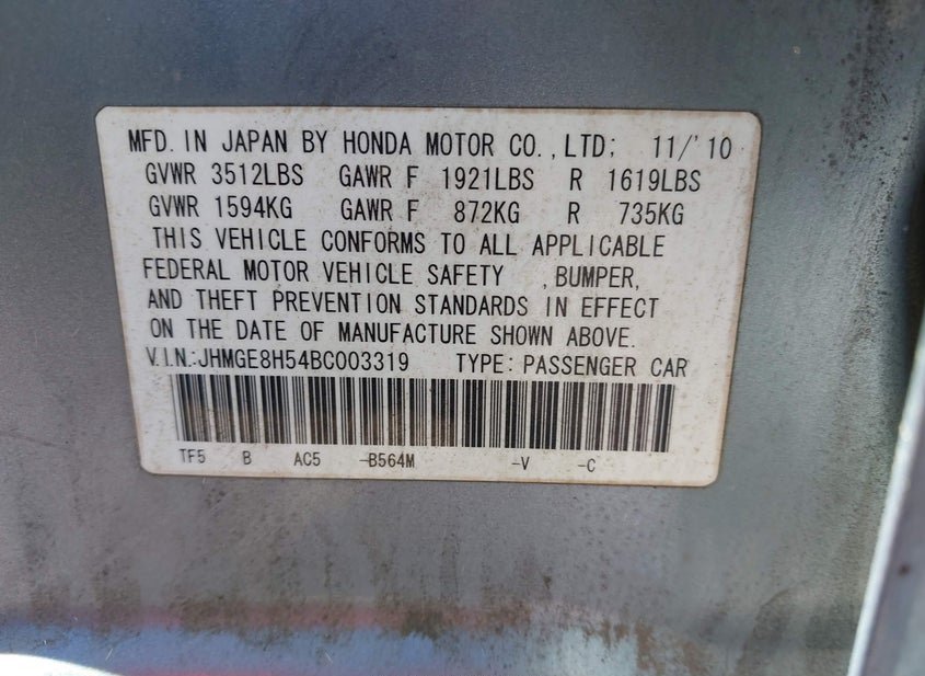 - VIN: JHMGE8H54BC003319