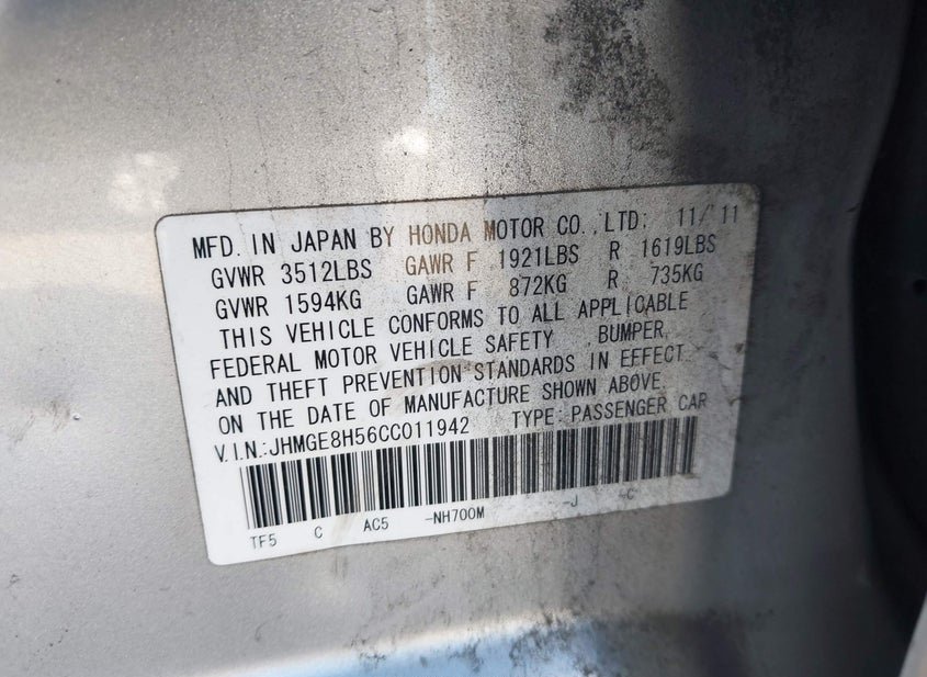 - VIN: JHMGE8H56CC011942