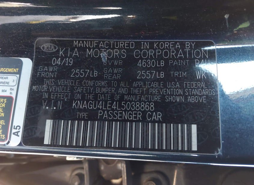 - VIN: KNAGU4LE4L5038868