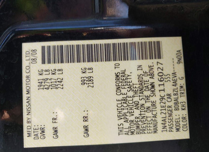 - VIN: 1N4AL21E29C116027