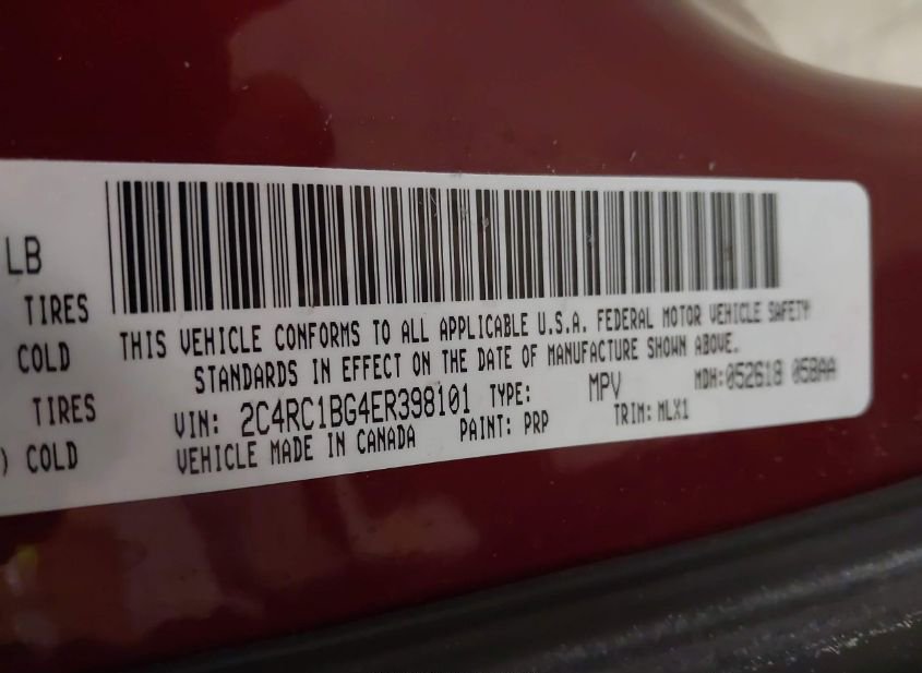 - VIN: 2C4RC1BG4ER398101