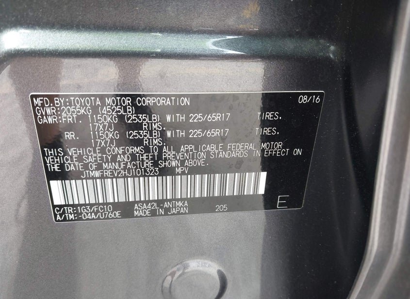 - VIN: JTMWFREV2HJ101323