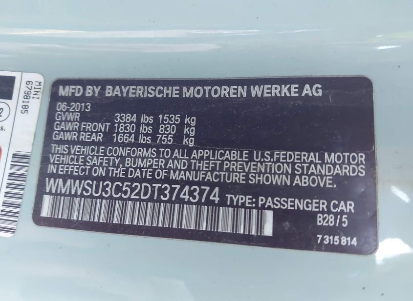 - VIN: WMWSU3C52DT374374