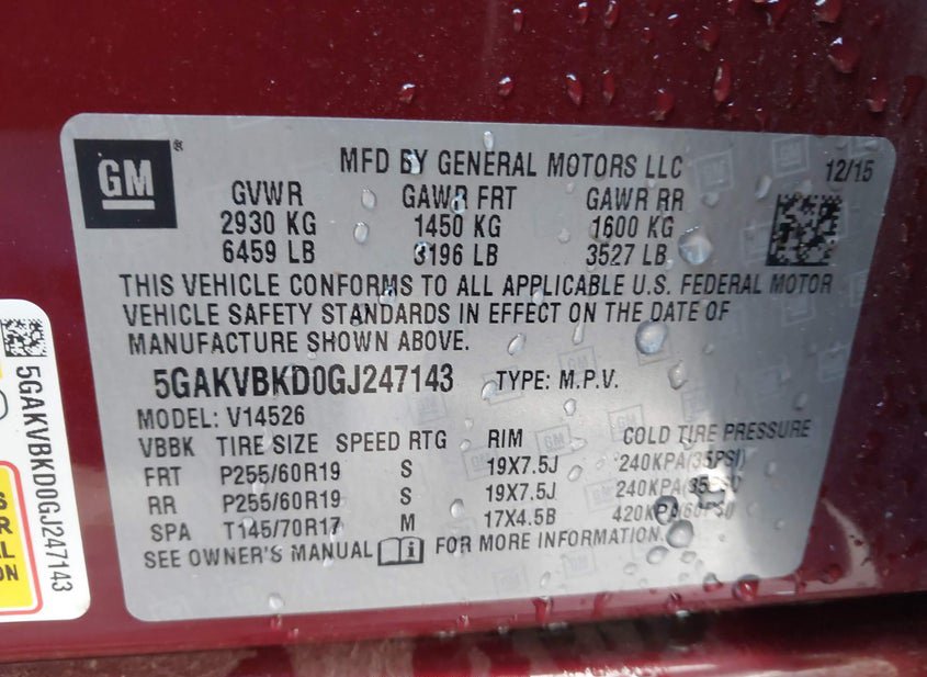 - VIN: 5GAKVBKD0GJ247143