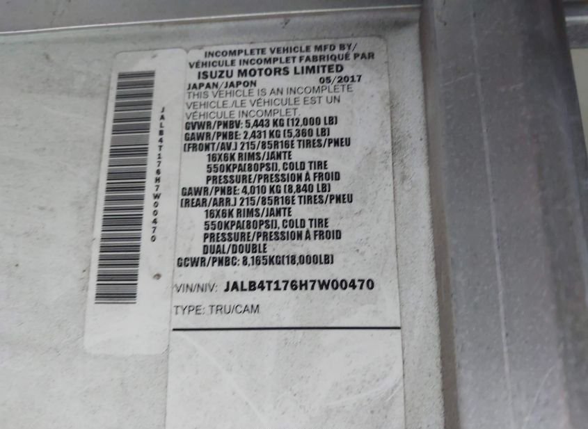 - VIN: JALB4T176H7W00470
