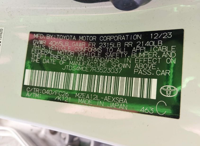 - VIN: JTDS4MCE7R3523037