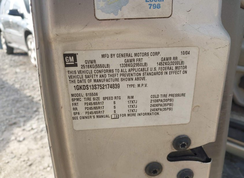 - VIN: 1GKDS13S752174839
