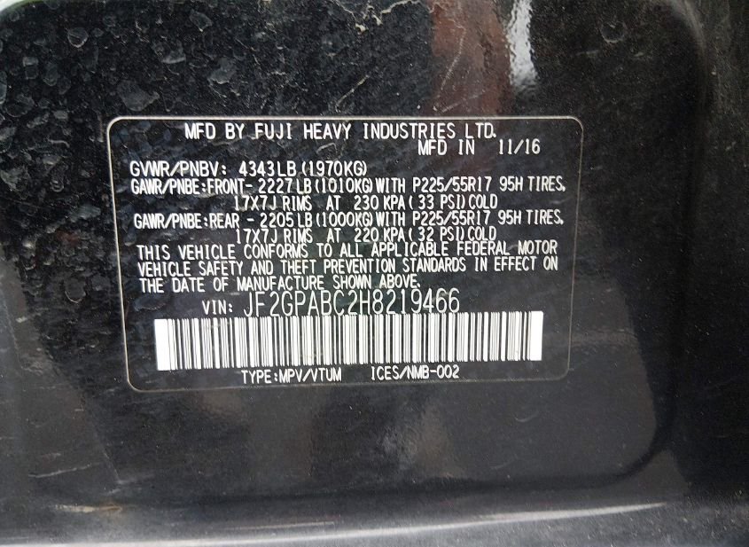 - VIN: JF2GPABC2H8219466