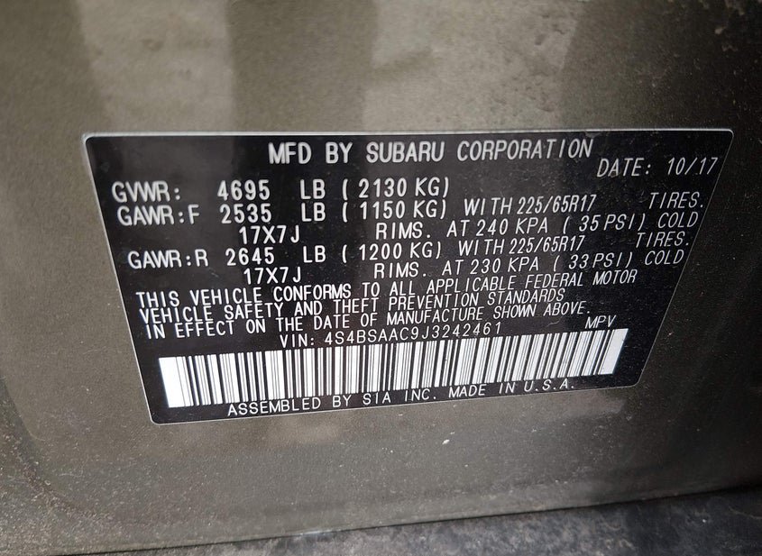- VIN: 4S4BSAAC9J3242461