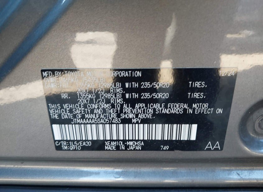 - VIN: JTMAAAAA5SA057483