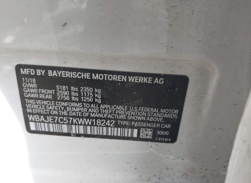- VIN: WBAJE7C57KWW18242