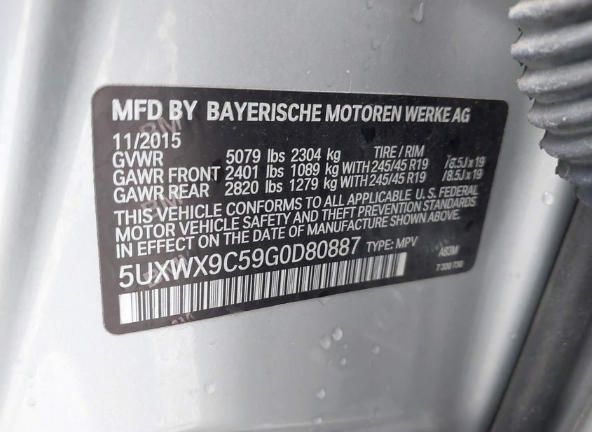 - VIN: 5UXWX9C59G0D80887