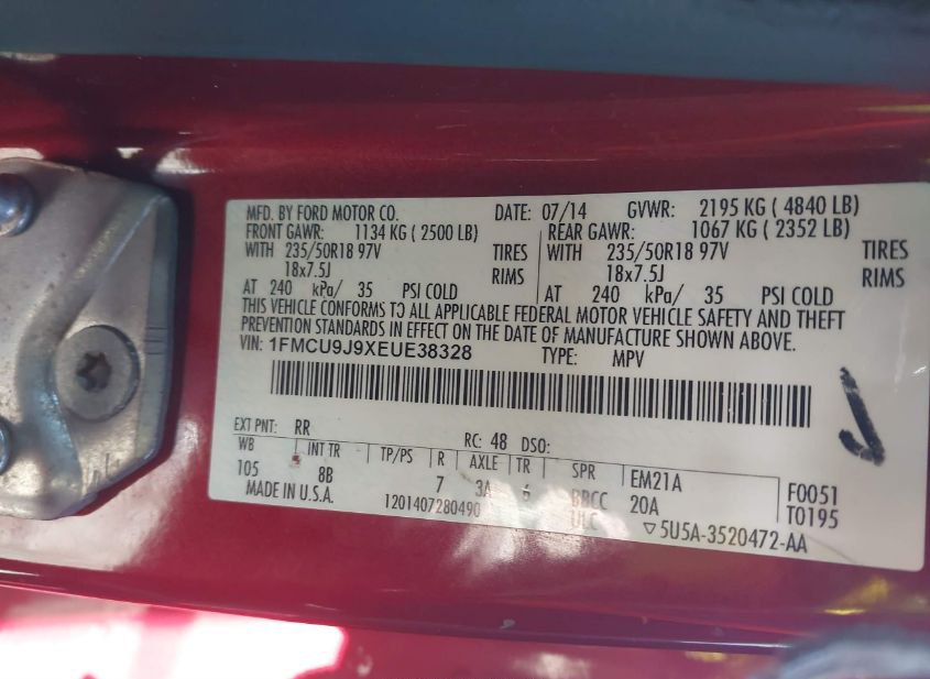 - VIN: 1FMCU9J9XEUE38328