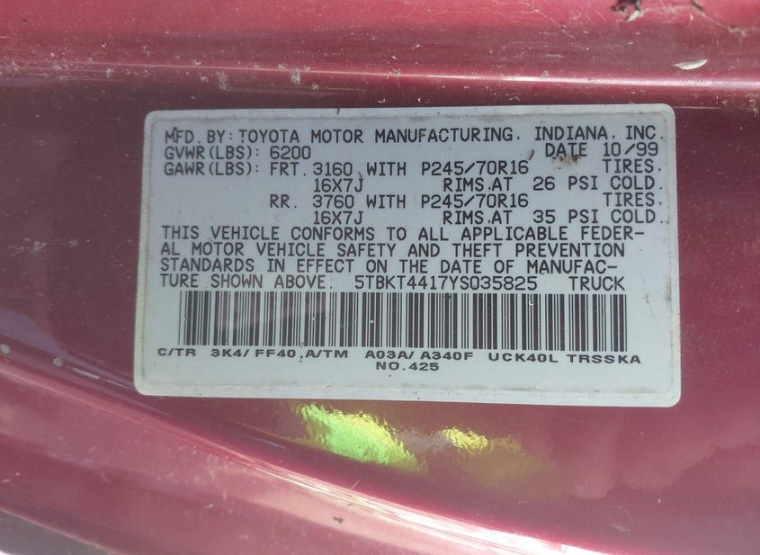 - VIN: 5TBKT4417YS035825