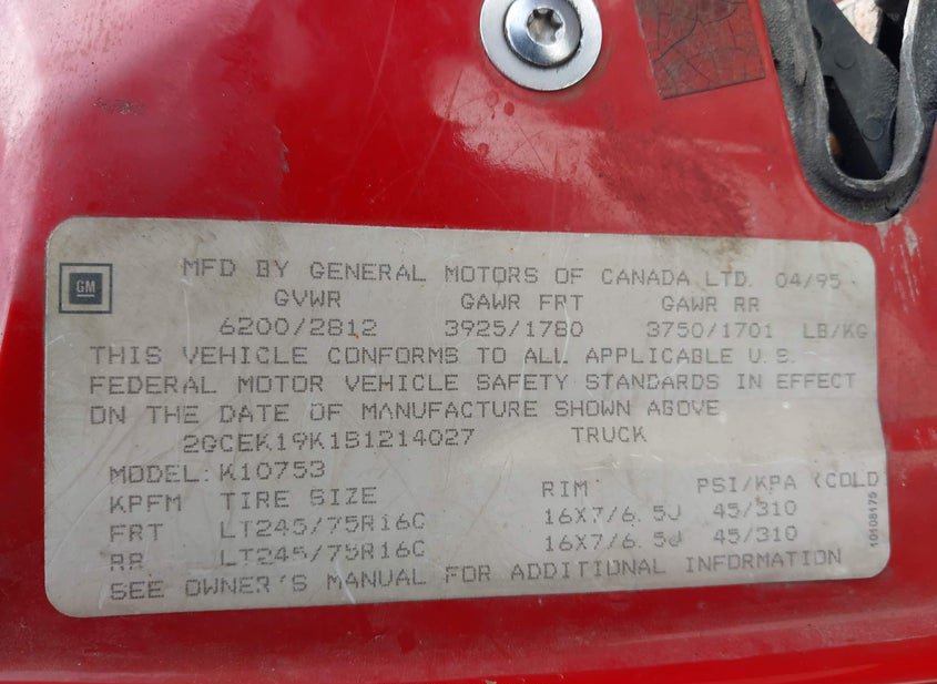 - VIN: 2GCEK19K1S1214027