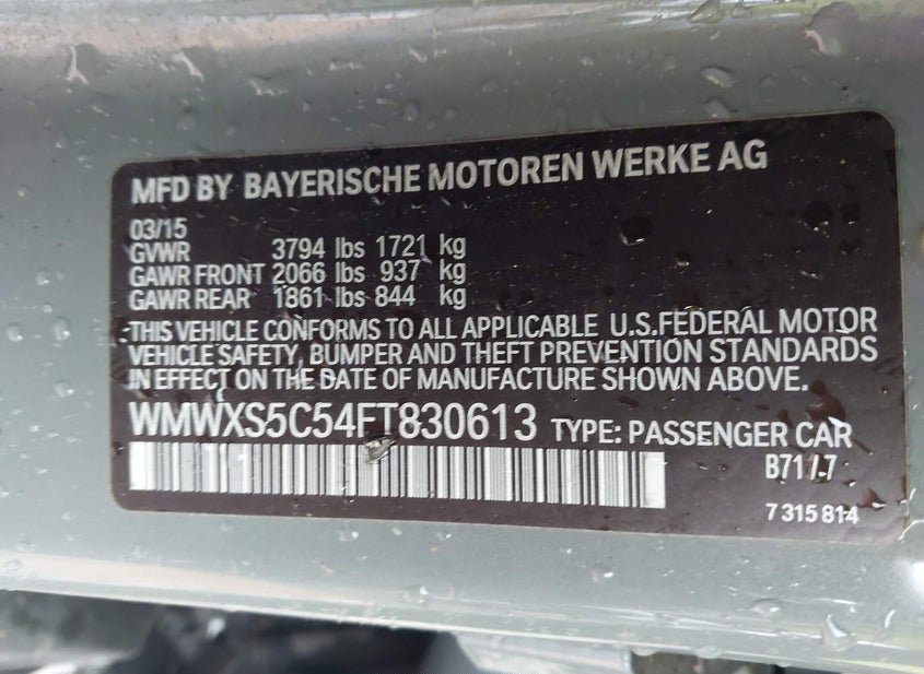 - VIN: WMWXS5C54FT830613