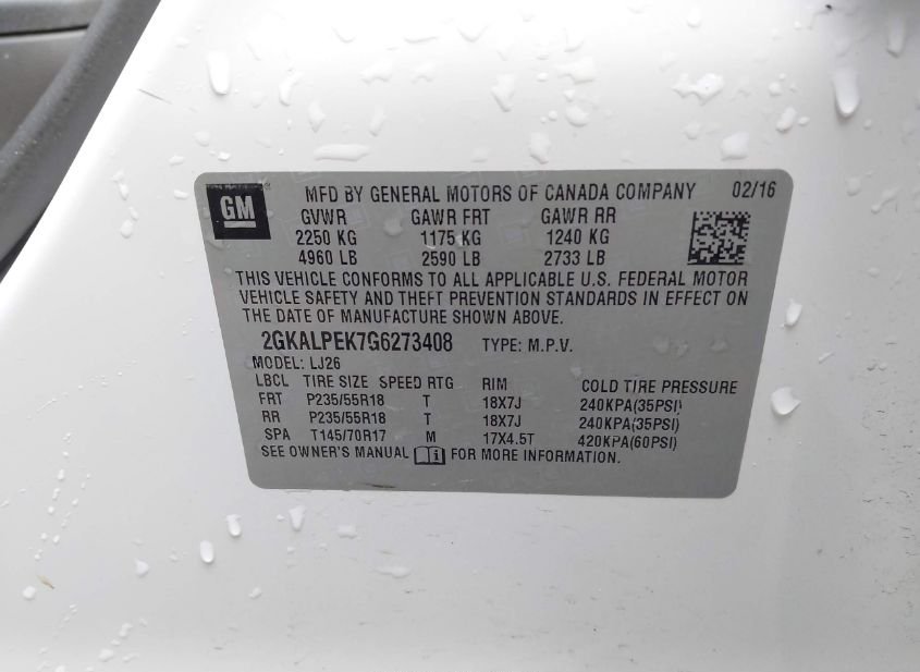 - VIN: 2GKALPEK7G6273408