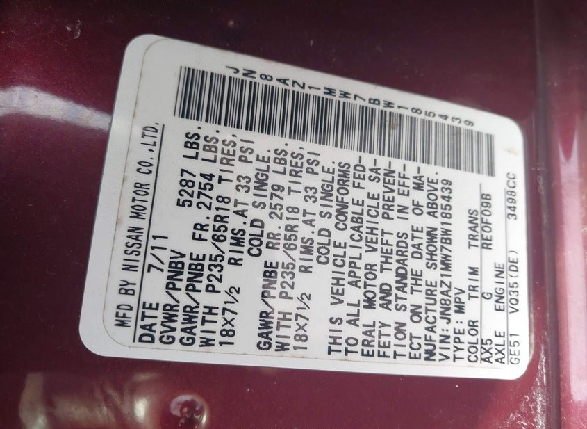 - VIN: JN8AZ1MW7BW185439