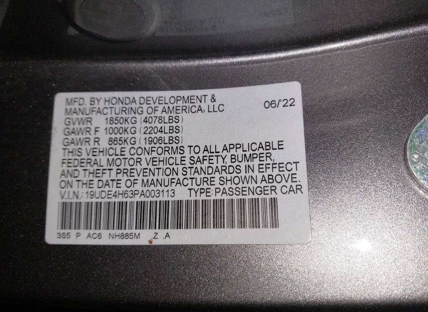 - VIN: 19UDE4H63PA003113